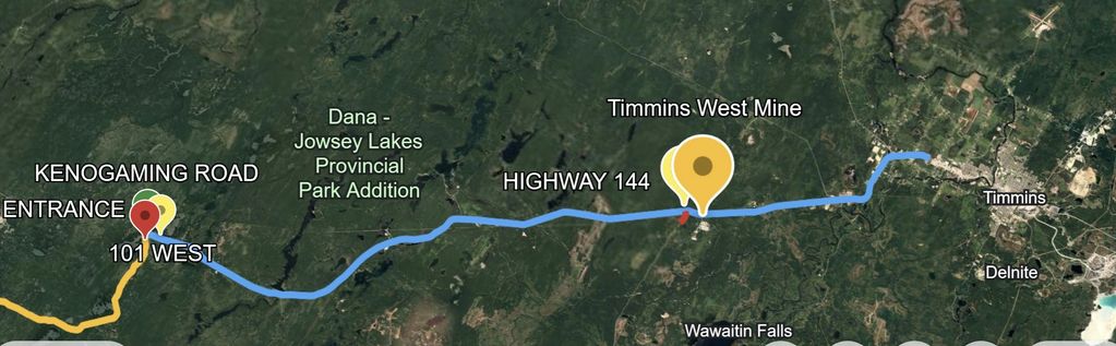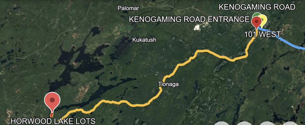 From hwy 101 to Horwood properties via Kenogaming road is approximately 44 kms